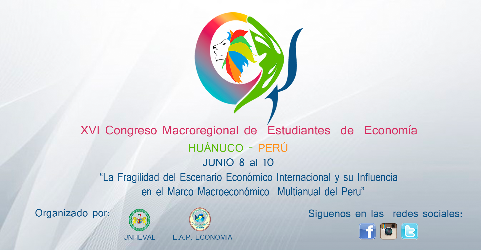 La Universidad Nacional Hermilio Valdizan, mediante sus estudiantes de pre grado tiene las mejores intenciones de organizar este magno evento, con la única finalidad de mejorar la calidad de aprendizaje y de investigación, para aportar al desarrollo de las ciencias Económicas; razón por la cual nosotros asumimos el firme compromiso de aportar en ello, en la organización del “XVI CONGRESO MACRO REGIONAL DE ESTUDIANTES DE ECONOMIA CENTRO– HUANUCO ” el cual se realizara del 8 al 10 de Junio del 2016